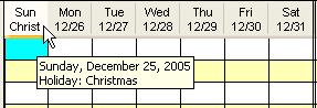 Depending on the sizing of the schedule cells, only part of the description may be visible. Hover the cursor over the header to display the Holiday Description.