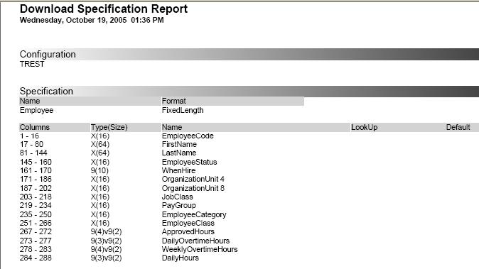 The Specifications button opens a screen to view a PDF report of the layout of the download file, including the order and allowable length of fields (if fixed length was specified).